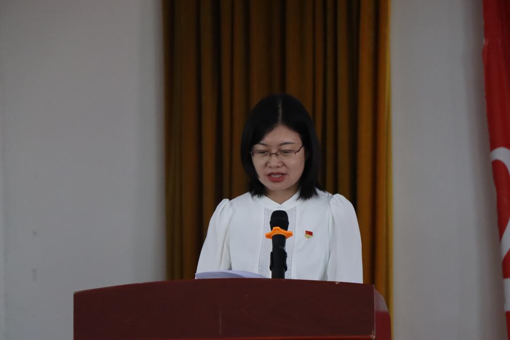 全体成员起立奏唱国歌,仪式正式开始。学员代表金融工程2282班钟怡娟发言。她代表全体入党积极分子郑重承诺,将认真上好党课,做好记录,以积极进取的学习态度加强党的理论知识学习,用科学的理论武装自己,用高尚的精神充实自己,努力把自己培养成为社会主义事业的合格建设者和可靠接班人。