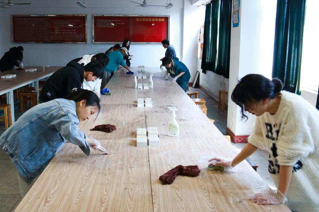 在学院党建工作中心负责人的精心组织下,近20名学生党员积极参加本次党建实践活动,投入到对实验楼教室清扫工作中。活动伊始,党员们领取由学校集中购买的清洁工具,认真聆听着负责人的安排和要求,在明确注意事项后,迅速展开此次实践活动。他们积极认真,分工明确,一部分党员或清洗课桌,或处理污渍,一遍遍的清洗很快让课桌变得干净如初。另外一部分党员认真清扫教室里的角角落落。经过一个半小时的劳动,教室已焕然一新,党员们也纷纷为自己的劳动成果展开笑颜。