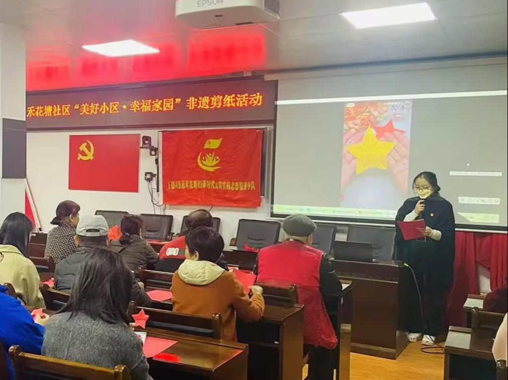 为加强党员同志们之间的交流,进一步学习和弘扬中华优秀传统文化,感受传统文化的独特魅力,增强民族自豪感与使命感,11月26日第五党支部组织了以“非遗剪纸蕴‘廉’情,红色基因永相传”为主题的党员实践活动。本次党员实践活动由应用技术学院第五党支部学生党员与禾花塘社区的居民共同参与。
