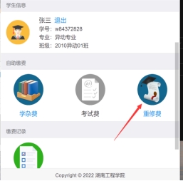(3)进入缴费系统后点击"重修费"进行缴费。
