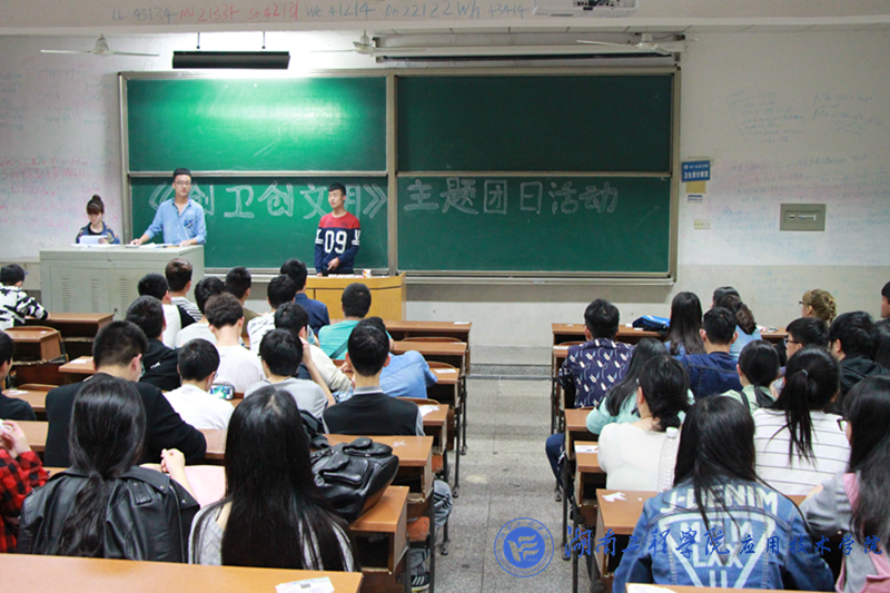 为积极响应和支持湘潭市创建全国文明城市,全国卫生城市工作,我院大一大二全体学生于4月15日晚7:00、4月17日7:00于南校区第一教学楼开展以“创卫,创文明”为主题的团日活动。