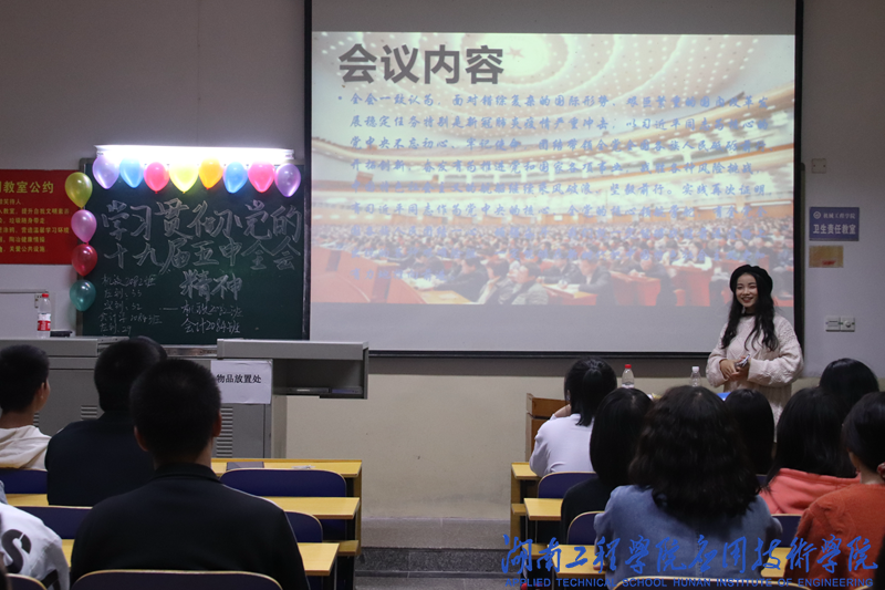 为深入了解中国共产党第十九届中央委员会第五次全体会议精神,我院大一全体学生于11月15日19:00在第一教学楼开展“学习贯彻党的十九届五中全会精神”主题团日活动。