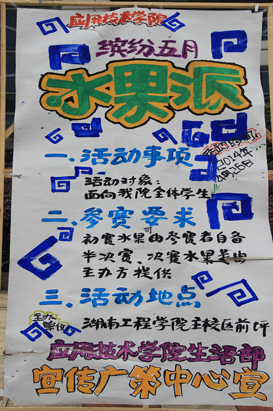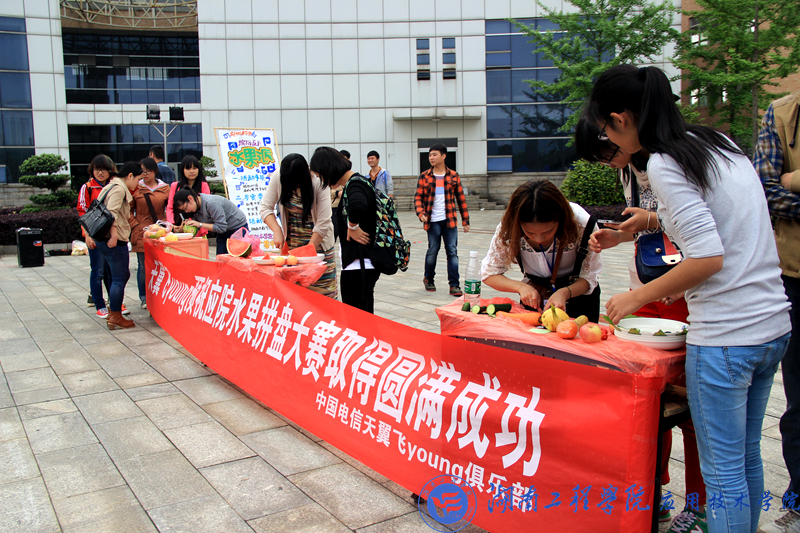 4月27日下午1:30,我院生活部主办的水果拼盘大赛在知行广场举行。这次比赛将决出一二三等奖以及最佳创意奖和纪念奖。大赛评委由团总支学生会主席团担任。
