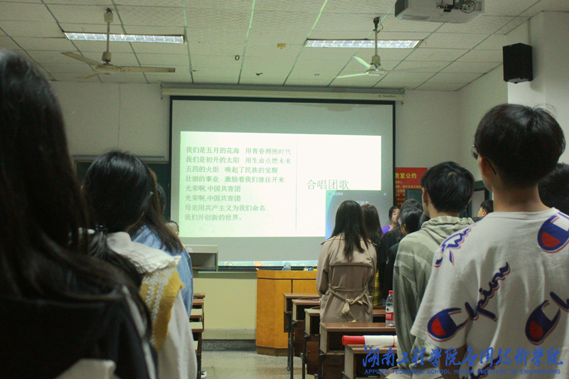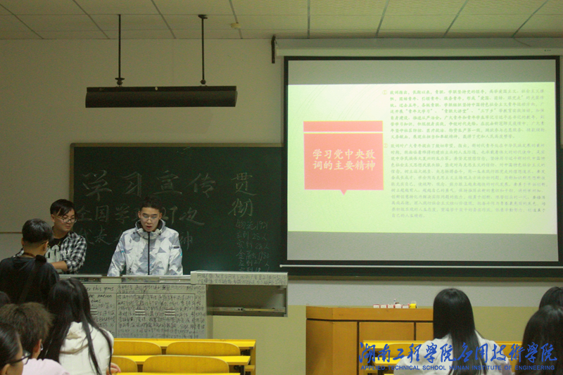 为深入学习贯彻习近平总书记贺信精神和全国学联二十七大会议精神,10月11日19:00,我院大二各班级在第一教学楼举行了"学习二十七大精神,争做优秀共青团员"为主题的团日活动。