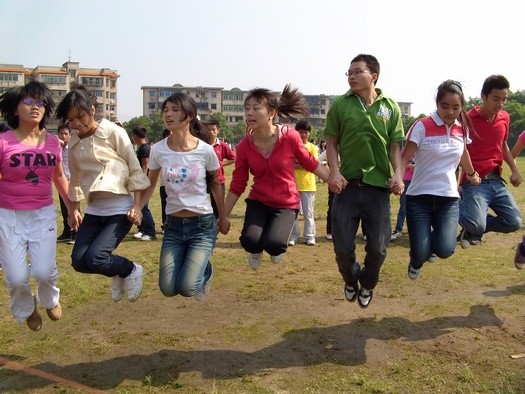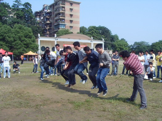 为了让本次活动更具参与性,给大家留下深刻的印象,其参赛队伍在比赛中均采取男女搭配的方式进行。比赛项目有男+女接力、五分钟八人手拉手跳绳比赛,突显了“趣味”和“合作”的主题。在比赛现场,活动进行的极为激烈,各位同学积极发挥主观能动性,讲求比赛策略,充分利用优势, 配合默契。其中以跳绳比赛最为有趣,记者随机观看了工商管理09级的同学,开始跳的时候,他们有些不顺利,随后大家改变了方法,齐心协力一口气跳了83个,展现了他们的超强实力。