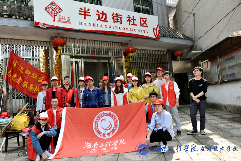 4月7日下午2:00,我院感恩社携手二十四名预备党员前往岳塘区半边街开展志愿活动。