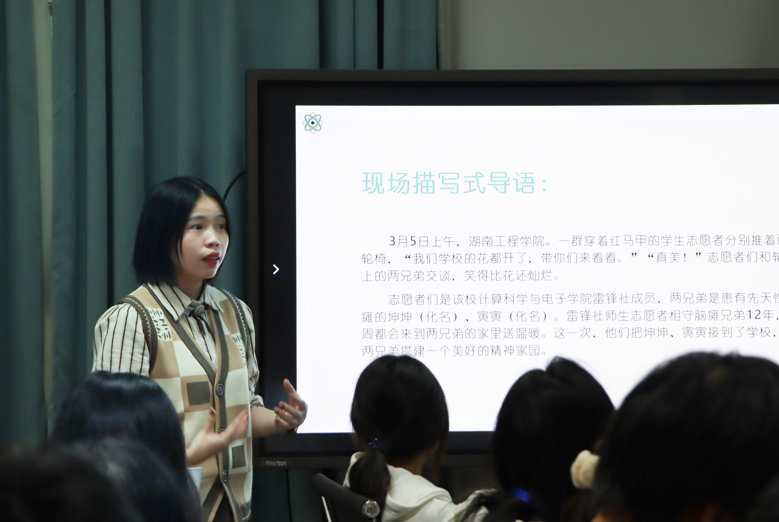 杨欢以何为新闻稿为切入点,结合湖工宣传经验,具体解答了如何“创标题”“成导语”“立主题”“收结尾”。她以其在大学二年级就发稿《光明日报》(《爱心树》)为例,告知同学们作为好的新闻人不仅要具备良好的沟通能力,还要善于观察和挖掘新闻线索,多阅读优秀的新闻作品,多学习经典的结构和表达方式,才能不断提升写作水平。