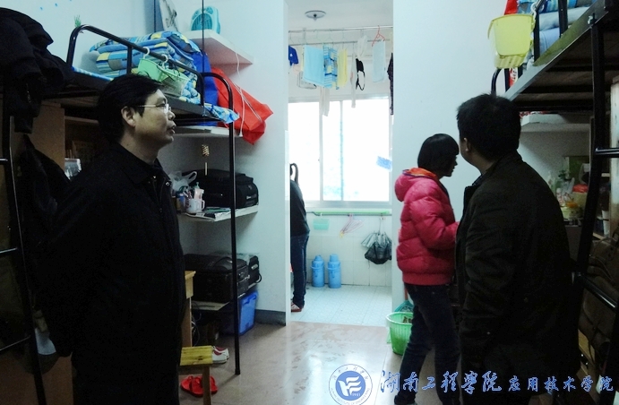 为营造安全舒适的宿舍环境,增强同学们的安全意识,让安全的警钟长鸣,3月22日中午1:00,我院院长李光中等全院领导率全体辅导员老师及团总支学生会干部,兵分三路,对我院主校区和南校区的学生宿舍进行了细致的检查。