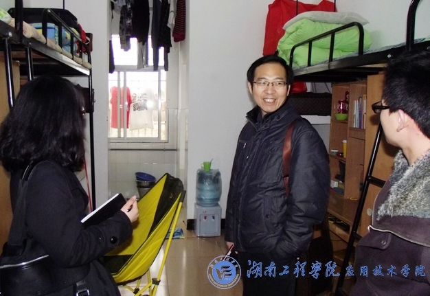 宿舍卫生和大功率电器的使用是检查的重点,检查组在每间寝室提醒同学们,要注意用电安全,不要私拉乱接电线。春季要勤于打扫卫生,勤于开窗,通风换气,杜绝室内抽烟,以免影响自身健康。院领导和同学们就学习和生活中的问题进行了亲切的交谈,认真听取了同学们反映的意见。李光中指出,检查的目的是为了解同学们的学习环境,督促大家的学习,希望大家在大学四年里把握时间,有所收获。彭栋梁书记要求大家培养良好的生活习惯,提高学习和工作能力素养。徐粤宇副书记叮嘱同学们不要浪费青春,要有目标的学习。因近来天气异常,他们还要同学们注意保暖,适当增减衣物,以免生病而影响学习。同时他们还督促同学们要以学习为中心,扎扎实实的打好基础,为将来的进一步发展做好铺垫,希望同学们在新的学期中取得优异的成绩。