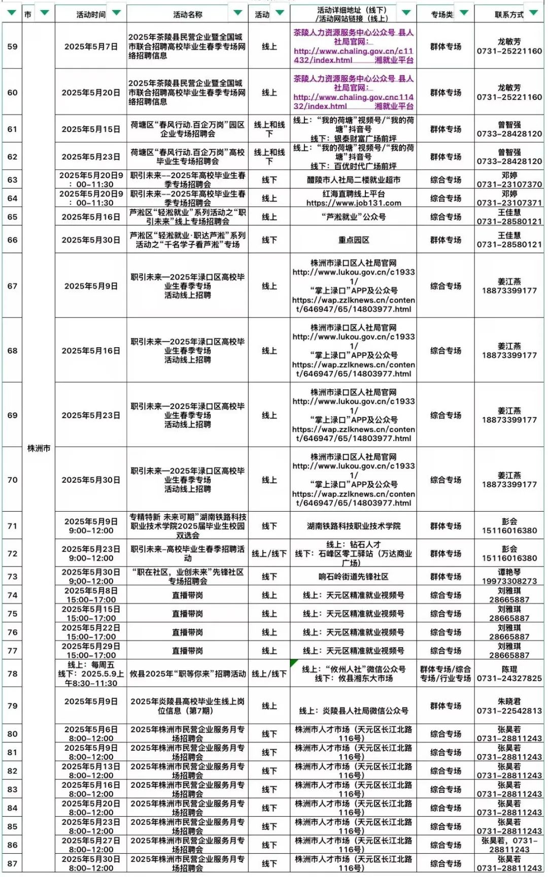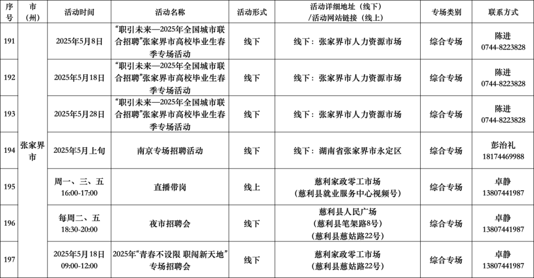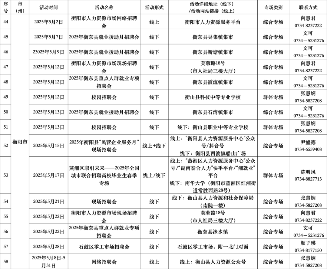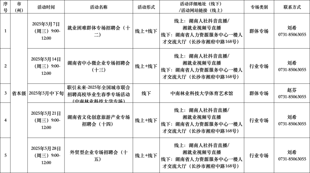 扫码查看“5月全省公共招聘活动预告信息表”(具体活动安排按实际举办地为准。)