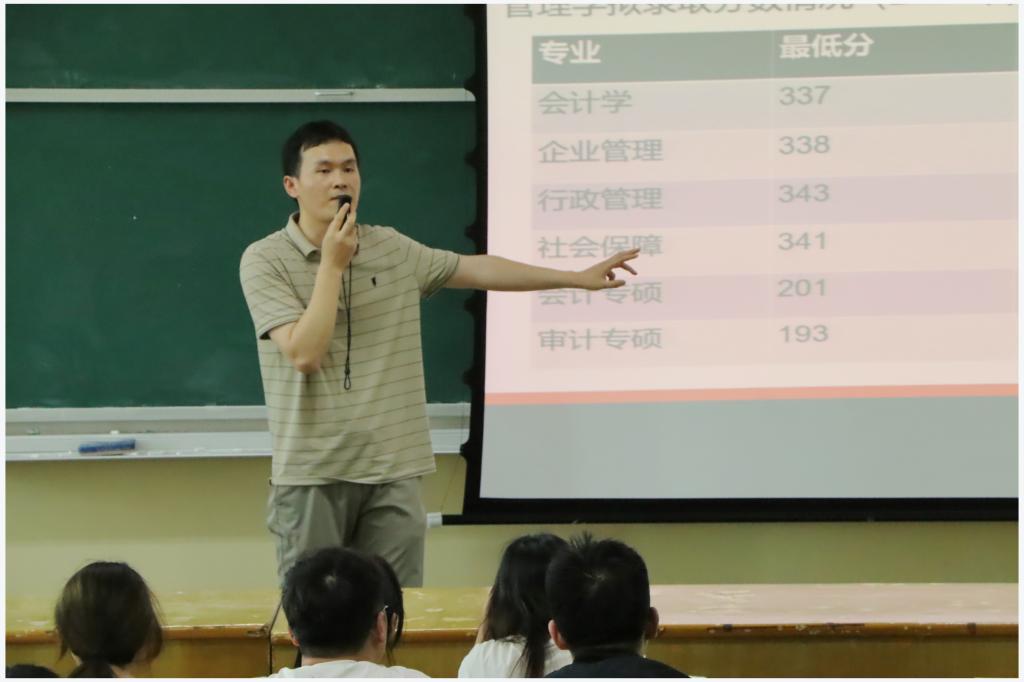 张伟结合近五年考研报名人数、录取比例等关键指标的变化趋势,分析考研难度情况,让同学们对考研形势有了清晰的认识;对考试内容、科目及流程进行了详细解读,帮助同学们构建起完整的考研知识框架。