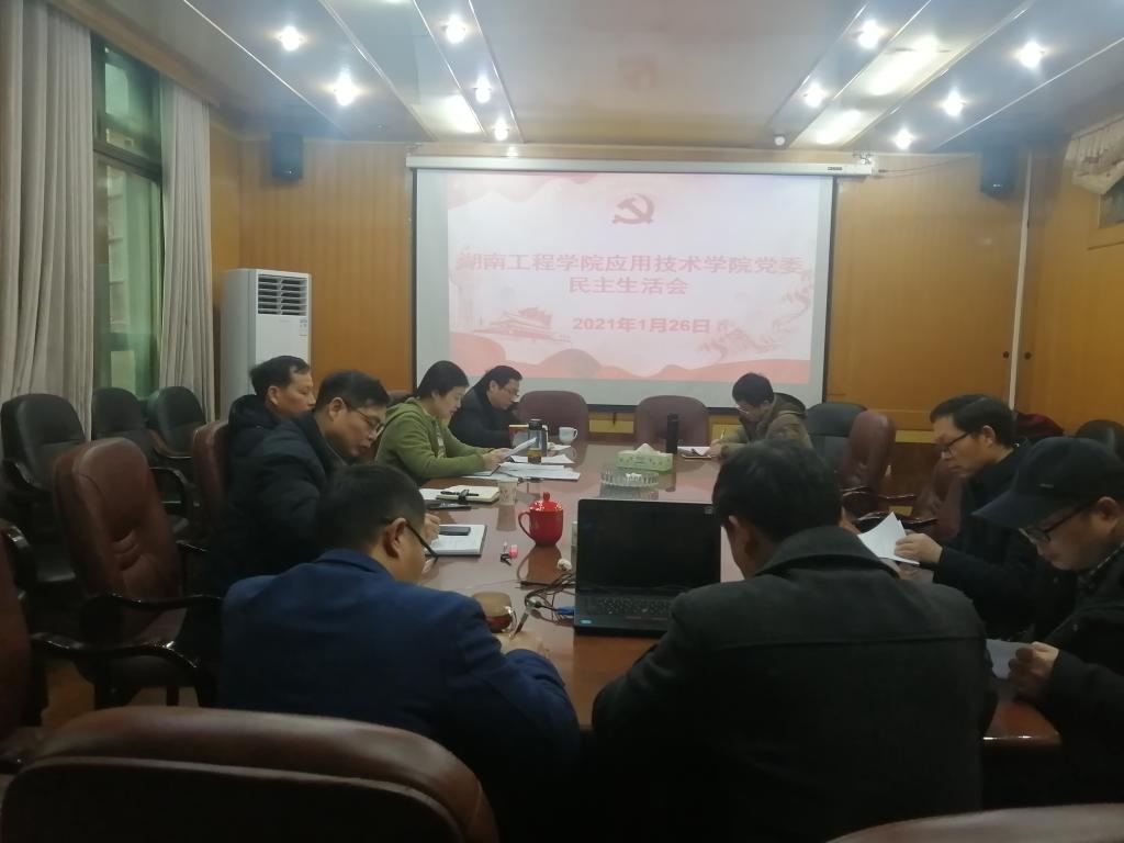 1月26日,应用技术学院党委在207会议室召开2020年度民主生活会。党委委员黎娅、李光中、陶连洲、梁开健、胡武平、肖松涛、刘红石参加会议。副校长魏克湘应邀指导会议,院组织委员周建宇列席会议。