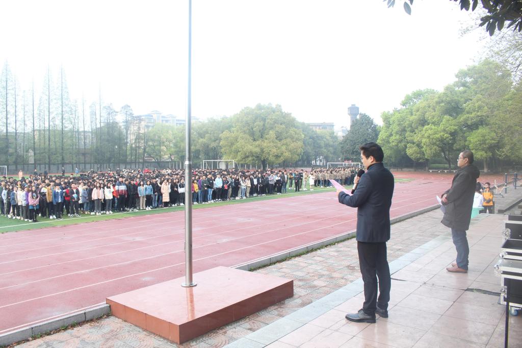 徐粤宇做“牢记习近平总书记讲话,争做新时代的新青年”主题讲话。他强调幸福和美好未来不会自己出现,成功属于勇毅而笃行的人,勉励学生要刻苦读书,不断提升本领,做新时代的奋斗者,追梦者,做社会的栋梁之才;要积极投身人民的伟大实践之中,用奋斗去书写奉献青春的时代篇章。