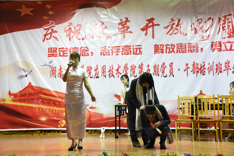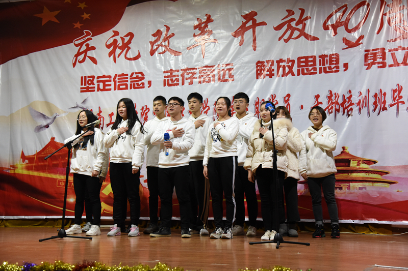 最后全场观众挥动着手中的闪光灯合唱《明天会更好》,至此,365英国上市应用技术学院庆祝改革开放40周年暨党员干部培训班结业典礼圆满落幕。