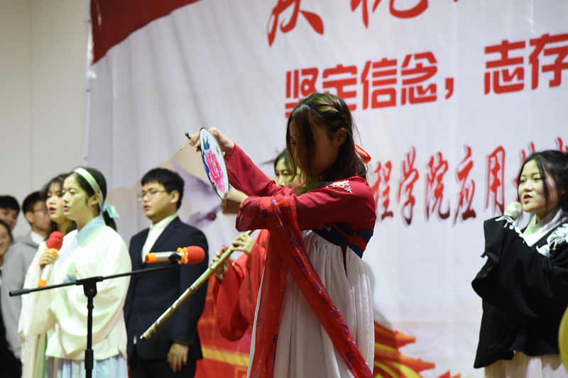 典礼之后便开始了精彩纷呈的文艺晚会。开场第一个节目为配乐朗诵《以梦为马》,干净清澈的声音与舒缓的音乐跑到观众的心里,带给观众温暖;合唱表演《穿越古今》中华文化与现代美的完美结合,给人以视觉与听觉上的双重享受;热情洋溢的街舞串烧表演点燃了在场观众的激情;舞台剧《新白雪公主》中新颖的故事情节引得观众们哈哈大笑,在嬉笑的舞台表演中,表达出一个人生哲理,即人不要看重外表,内在美比外在美更重要;南苑最强juice乐队带来的《知足》更是将现场氛围带向高潮,现场观众都不自觉的挥动双手,跟着一起哼唱;《应院最炫广播体操》舞蹈表演带给观众全新的感受,多首歌曲的完美结合,给人一种积极向上的信念;小品表演《新上海滩》颠覆了原有的故事情节,复古风格与新世纪元素的碰撞,给观众们带来了视觉冲击,诙谐有趣的表演引得现场一阵阵欢快的笑声;《历经风雨看少年》的合唱表演,传达出一种不负年少不负我,发奋图强做栋梁的感情;舞蹈表演《青春修炼进行时》洋溢着青春活力的气息,活波欢快的舞蹈给人以积极向上的感觉;由主席团带来的走秀表演《未央》更是将全场带入另一番高潮,走秀前《不染》的演绎,优美婉转的歌声将观众们带入不染尘世的仙境,走秀时的小哥哥小姐姐们美貌与才华集于一身,展现着青春的活力,青春的美好,很好的诠释了奔赴伟大时代,追逐青春理想的理念。