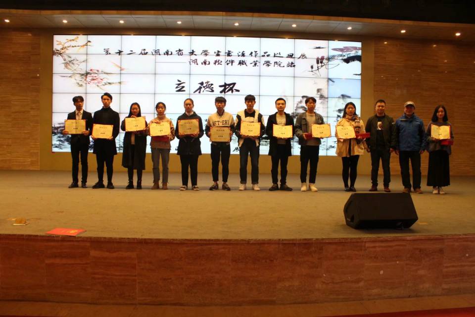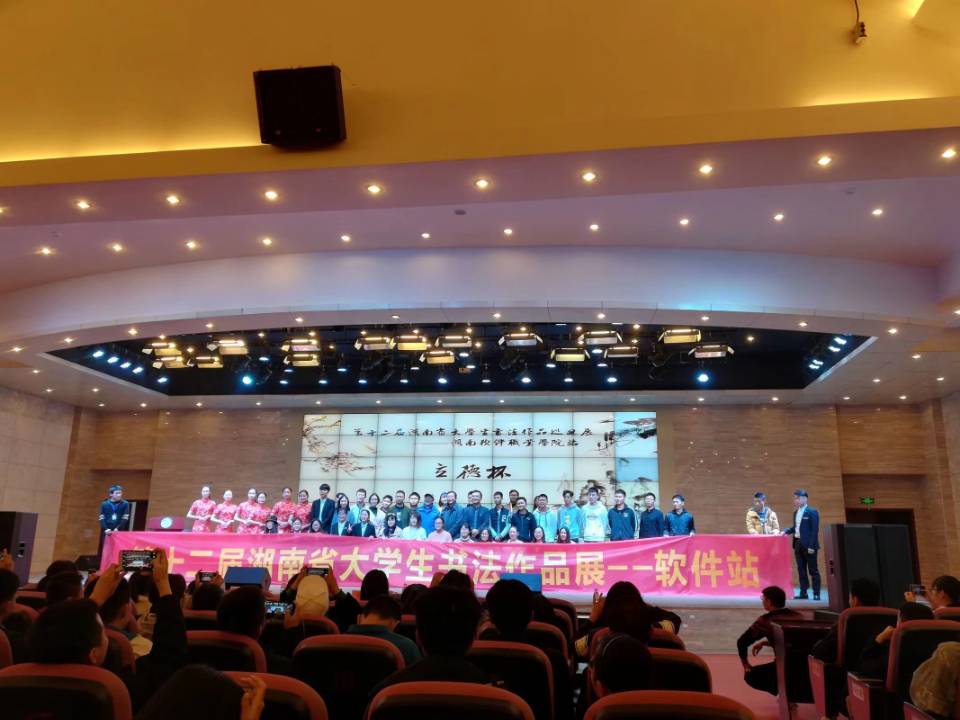 11月25日上午9:30,湖南软件职业学院学生社团联合会兴苑书画社承办的“第十二届湖南省大学生书法作品巡回展--软件站暨湘潭市第四届高校书法联赛--立德杯”在湖南软件职业学院学府大会堂召开,我院墨邦书法协会受邀参加,此次比赛共20余所学校参加。