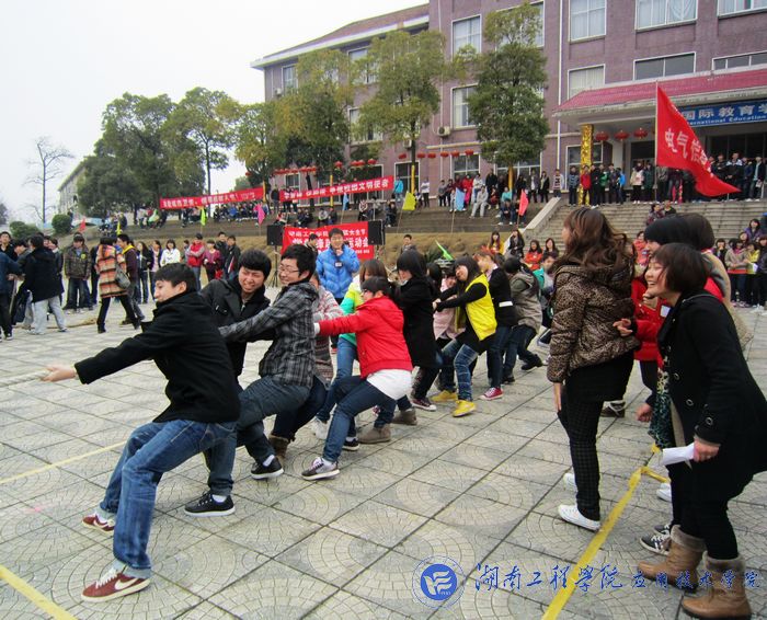 我院共有90多人参与此次活动中的全部四个项目:拔河比赛、接龙跳绳、集体跳绳、花样高跟鞋接力赛等。在拔河赛中,我院参与者同心协力,闯入了决赛,在 “一、二、一、二……”的呐喊声中,最终获得了第四名。接龙跳绳中,每个队员都跳出了自己的风采。在跳跃中,他们用心去感受运动带来的轻松与愉悦,在脚离开地面的那一刻,他们似乎放飞了自己的梦想。