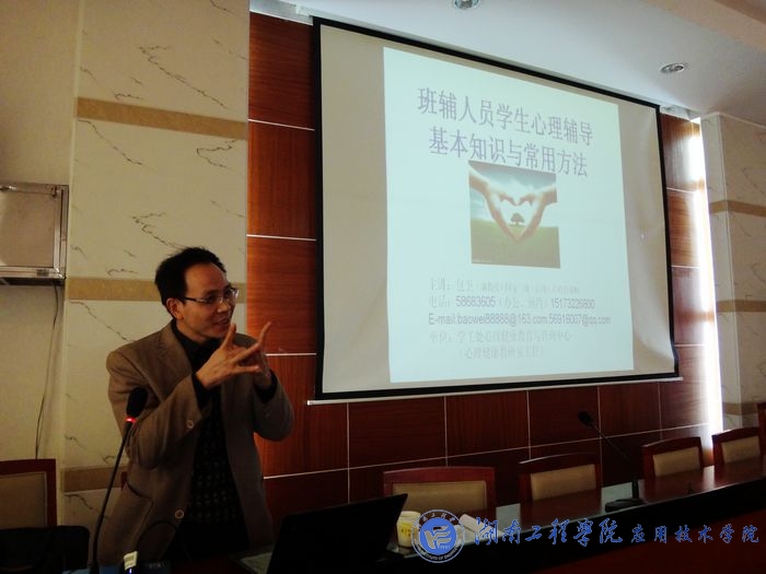 心理咨询中心教研主任包卫以《如何做好学生心理辅导的基本知识和常用方法》为题与大家进行交流,他以游戏幽默开场,以实例阐述了做好学生心理健康工作的重要性,学生工作人员在做学生心理工作时要掌握动态平衡、扬长避短,熟悉工作内容,清楚工作对象的心理特征,同时了解自己的特点,掌握基本的心理辅导常识和方法。