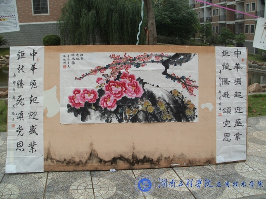 本次展览的作品是经过了团总支宣传广策中心和老师的层层筛选,选出的优秀作品,包括:字画、摄影、手抄报,各作品汇集在一起,显得异常的精彩纷呈、灿烂夺目。一幅幅苍劲有力的书法、寓意深刻的绘画、构图精美的摄影作品,在学生公寓前的清源溪畔形成一道亮丽的风景线,吸引了无数过往同学的眼球,或亲手触摸,或近距离观看,或人画合影,使人犹如置身于艺术的殿堂。各作品充分体现了创作者敏锐的观察力、丰富的想象力以及扎实的艺术功底,其中,围绕校庆六十华诞的主题展开的手抄报,更是体现了我院学子对学校六十华诞的高度关注。本次展览展出的作品深深打动了前来参观的老师和同学们,使他们徜徉在一片书法绘画的海洋中流连忘返,同时也展现了我院学子多才多艺的一面。