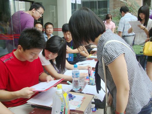 随着大一开学的日益临近,我院迎新准备工作也正紧锣密鼓地进行着。9月14日,我院学生工作部的老师们都投入到一系列迎新准备工作中,包括:迎新设备检测﹑各环节任务的下达和落实等。为解决提前到校新生的住宿问题,学生工作部立即组织学生会的同学在新校区教学楼前设立了迎新咨询点。记者赶到的时候,负责迎新的同学正忙着给工程管理1082班的马蕊查找其所在的宿舍。马蕊是在父母和叔叔的陪同下来校报名的,此刻虽然在迎新同学的帮助下了解到了宿舍的具体位置,却不知怎么去,热情的迎新同学自然担当向导,迎新同学的热情使马蕊同学的家长连连表示感谢。其间,就在记者向迎新同学了解迎新情况时,发现身旁一个活力四射的小伙子正与其他迎新同学聊得火热,开始记者还误认为他也是迎新同学,后来才知道:他叫许强,也是新生,一个人从岳阳来的,今天中午刚到。他开朗、独立的性格立刻吸引了我们的注意力,于是马上同他进行了交谈:“你一个人来,家里人放心吗?你也不怕?”他笑道:“嘿嘿,他们是有些不放心,不过最终还是被我说服了,再说我一个20岁的准大学生还怕啥?”听着他质朴的语言,不得不让记者向他树起了大拇指。