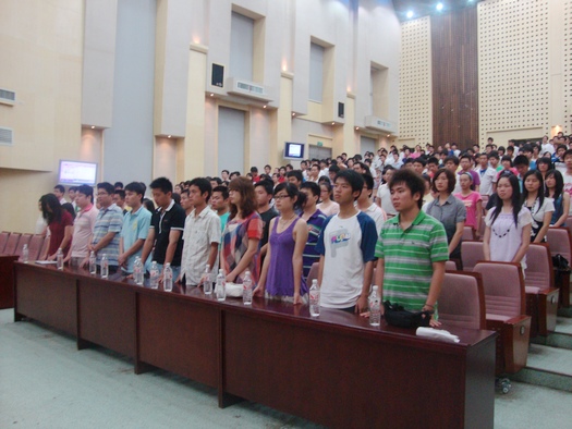 这是一场收获成果颇丰的盛会,师生欢聚在这里一起分享我院校园文化精神建设工作所取得的可喜成果。在第三届校园文化艺术节上,我院涌现出了一大批有才华、有创造力的同学,他们分别在“校园十佳歌手大赛” 、“辩论赛”、“书画大赛”、“手抄报比赛”等多项比赛中,取得了优异成绩。成平副书记、文山东副院长等领导和老师分别给“十佳班干”、“十佳心理委员” 、“十佳青年志愿者”、“先进个人”、“竞技赛优秀个人” 、“学生会团总支优秀部门”、“国家励志奖学金”和“国家奖学金”颁奖。我院第三届校园文化艺术节在催人奋进的校歌声中落下了帷幕! (记者:申梦芸;摄影:余圣芳、王柯丹)