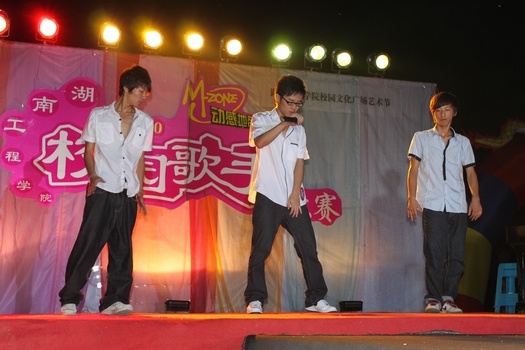 5月30日晚,365英国上市2010年度校园歌手大赛在北校区学海花园隆重举行。经过九场全校赛层层闯关,我院吴宇阳、周里宵宵、杨帆、姜雨靓、罗紫兮、尹婧六位选手成功晋级十强,经过最后两轮的比赛,来自我院会计0982班的吴宇阳获得亚军,经济管理学院郑凯、人文学院伍丹艳分别夺得了冠军和季军。另外,我院经济学0981班杨娇、刘顿分别获得最美丽声音奖、最时尚演绎奖。(作者:学通社;摄影:杨睿颐)