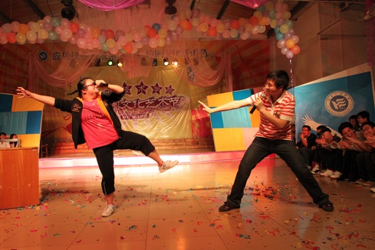 绚烂的灯光、梦幻的布景,一曲悠扬的小提琴四重奏《卡侬》拉开了表演的序幕。整台晚会共14个节目:有活力四射的现代舞《OH》、动感十足的街舞《Spicy》、别有风味的Hip Hop 表演《LA STYLE》、古韵味十足的扇子舞《床前明月光》;钢琴、二胡、小提琴加上一支独舞,为我们演绎了唯美的《神话》;我院校园歌手们带来了青春活泼的歌曲联唱《恋人未满》和《我是谁》;一场奇幻的魔术表演带领大家来到一个神秘的世界;同学们自编自导自演的小品《女生宿舍》更是笑爆全场;张宏老师特意为此次晚会准备了一首歌曲——《你》,给老师献花的同学络绎不绝,大家也感受到了老师身上具有的才华和魅力;湘潭大学兴湘学院的歌手大赛冠军也为我们带来了精彩的节目,一曲优美的《川藏路》展示了冠军的不凡实力!节目精彩纷呈,让人耳目一新,其中不得不提到的是同学们用一篇的朗诵《在一起》和一首深情饱满的歌曲《生死不离》表达了自己对玉树灾区的关心和爱心,这都是一种发自内心的呐喊——玉树,挺住!玉树,我们在一起!