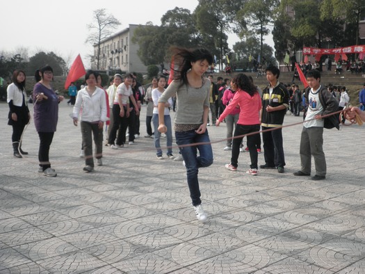 此次的运动会主要包括男女接力赛、拔河和跳绳三个比赛项目,旨在提高在校学生的身体素质,加强同学们间的合作能力,比如在男女接力赛这个项目上,就已经超越了传统接力赛的固有模式,运用男生背女生到目的地——女生选体育器材表演并返回原地的重复接力,来进一步培养男女团结合作的精神,参赛者的表现也使得在场的观众都忍俊不禁。另外,在拔河项目中外教的加入,接龙跳绳比赛上选手们的争分夺秒也成为了此次运动会的亮点。