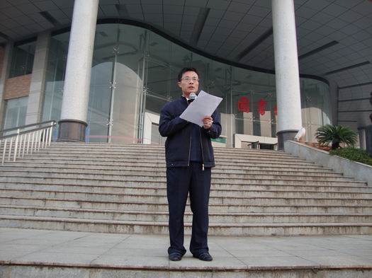 11月5日清晨6:40 ,我院本学期第一次早评在主校区(新)图书馆前坪举行,学生工作部单化任主任、辅导员陶连洲老师作了早评。