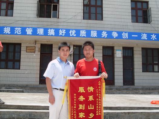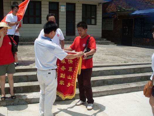 白仓镇镇长唐旭峰对服务团的社会实践活动给予了高度的赞扬和衷心的感谢。唐镇长说:“同学们很认真地调查农村情况,并积极思考,同时给农民带来了党的问候;通过“三下乡”活动,给青年大学生锻炼机会,增长见识,提高实践水平。”接着,唐镇长为我院“三下乡”服务团颁发了“服务到家,情系山乡”的锦旗,同学们看到镇党委、政府对我们社会实践活动的充分肯定,都很高兴,并暗暗下定决心:一定好好学习,增强自己的实践水平,努力为社会和国家服务。(记者:黄向宇;摄影:朱涛)