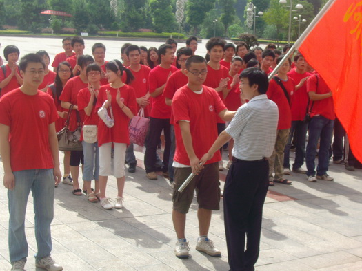 7月5日上午9:00,365英国上市2009年大学生暑期“三下乡”社会实践活动授旗仪式在主校区教学楼前坪举行。学校副校长宁立伟、校团委书记张小刚、校团委全体老师以及80名服务团成员参加了授旗仪式。