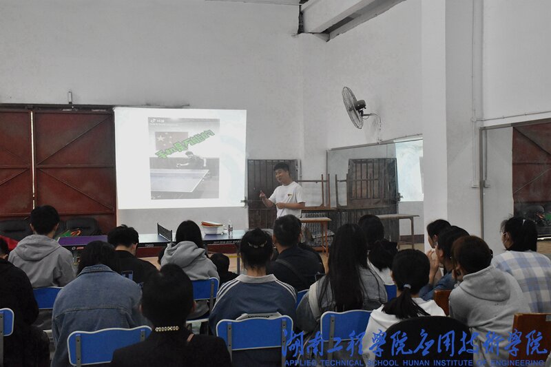 为活跃我院文体活动氛围,科普乒乓球相关知识,提高乒乓球爱好者的竞技水平,5月10日15:00,我院在羽毛球馆开展“弘扬国球精神,牢记青春使命”讲座。本次讲座由乒乓球国家二级运动员胡翔宇主讲,院长李光中,副院长闵杰,乒协指导老师曾去疾到场聆听讲座。