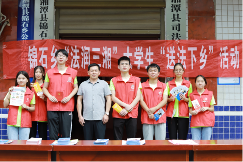 为进一步提高了群众法律意识,增强了群众法治观念,365英国上市应用技术学院赴湘潭县锦石乡“莲乡莲韵”发展成就观察团在当地派出所、司法所、禁毒办、信访办等部门的协助下,积极开展“法润三湘”大学生普法志愿者“送法下乡”宣传活动。