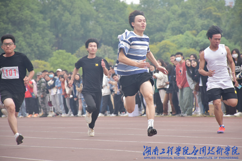 男子100米——我院选手表现出色,犹如脱弦的箭飞驰而出,充分展现我院奋勇拼搏的精神风貌,引得在场的观众欢呼不已。我院学子朱瀚伦、贺锦鹏在连绵不断的呐喊声、加油声、欢呼中冲过终点线,获得了亚军和季军。