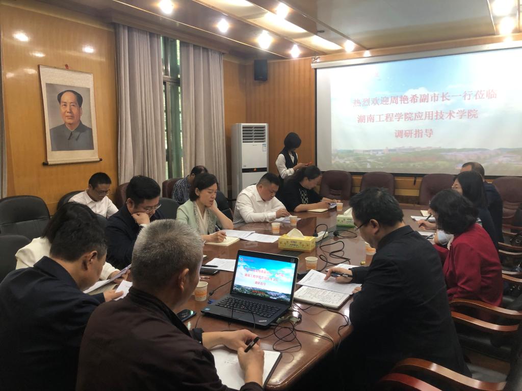 10月30日上午,湘潭市副市长周艳希等一行来学院调研。双方在学院办公楼207会议室召开座谈会。365英国上市党委委员、副校长向前,应用技术学院党政主要领导,湘潭市教育局、高新区等部门负责人参加座谈。会议由向前主持。