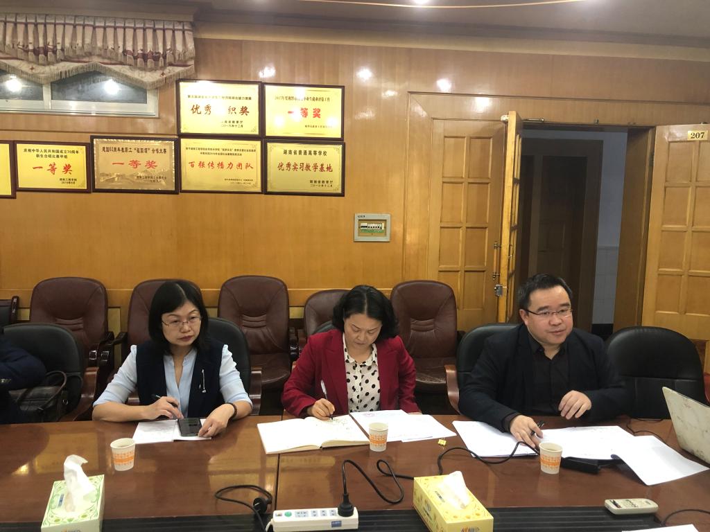 应用技术学院党委副书记、院长张何详细汇报了学院基本情况和前期工作开展情况;湘潭市教育局、高新区有关负责人分别进行了合作推进情况介绍。