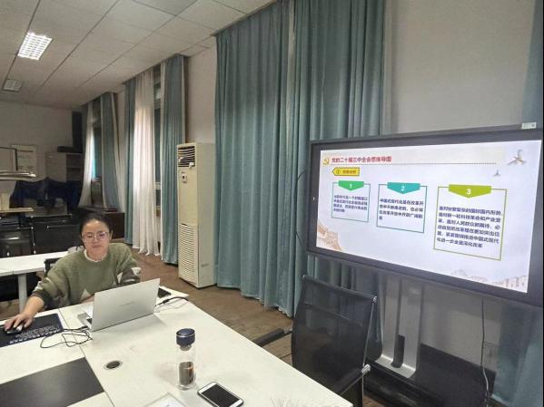 严明以微党课《二十届三中全会思维导图》形式展示《决定》中进一步全面深化改革的指导思想、总目标、重大原则和重大改革举措。要求全体师生党员领导干部深刻认识党的二十届三中全会的重大意义,切实把思想和行动统一到习近平总书记重要讲话精神和全会决策部署上来,贯彻落实党中央关于进一步全面深化改革的战略部署,以学校高质量发展助力实现湖南“三高四新”美好蓝图。课后布置了自学《决定》说明的任务。