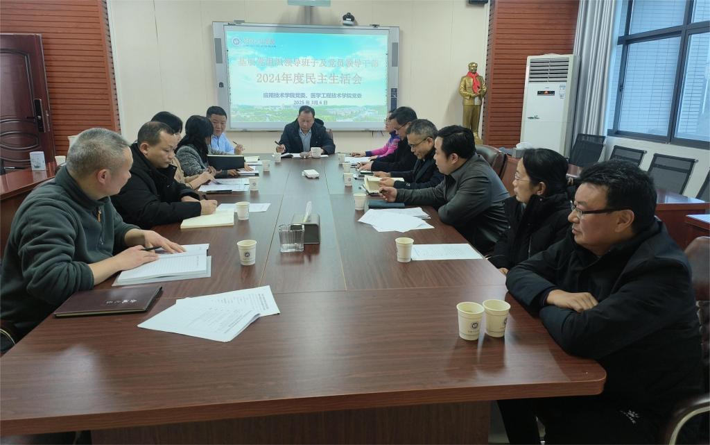严明代表党委领导班子作表态发言,表示将用好2024年度民主生活会成果,与学院党政班子成员共同努力,以更高的站位、更坚决的态度和更务实的举措,在人才培养、大学生就业创业和推动学校“双升”目标实现等方面作出应用技术学院应有的贡献。