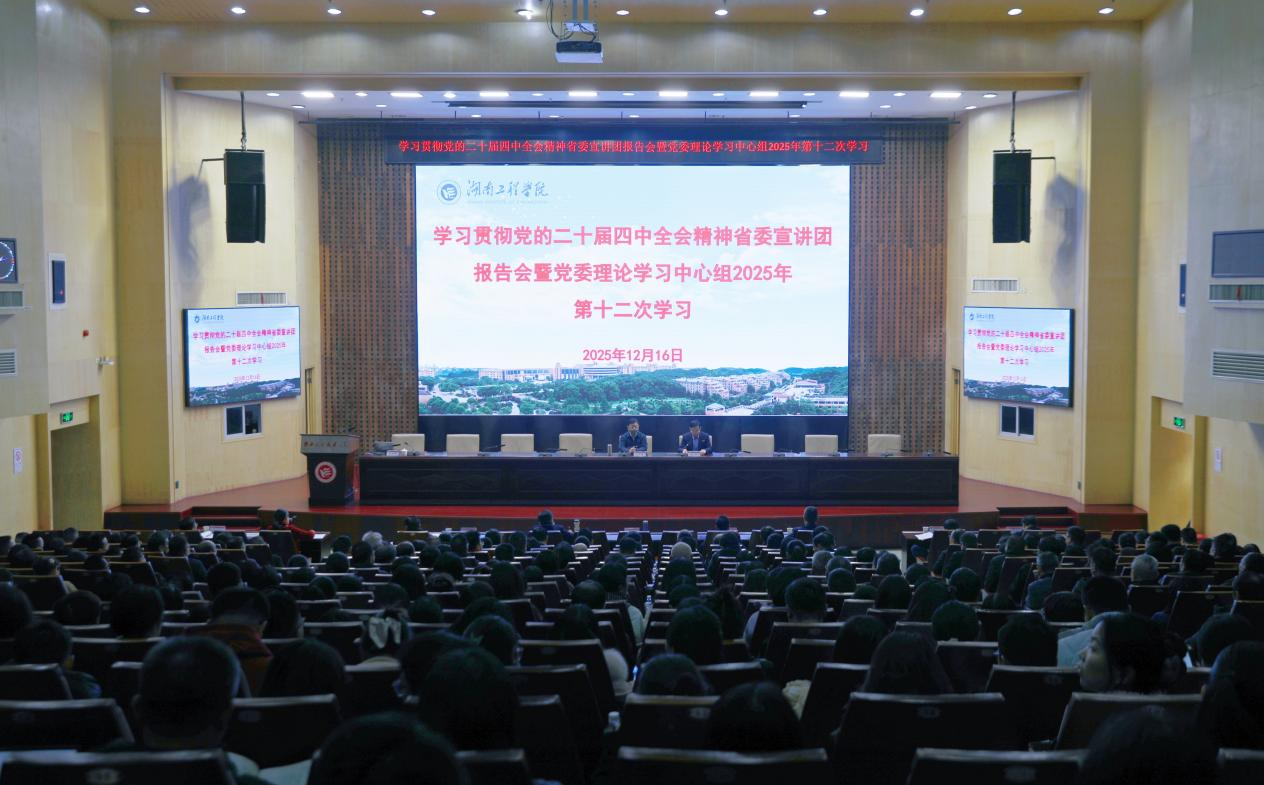 12月16日下午,学习贯彻党的二十届四中全会精神省委宣讲团报告会在图书馆一报告厅举行。我院党委理论学习中心组成员和全体辅导员参加,通过辅导报告形式开展本年度第十三次学习(扩大)。本次学习由省委宣讲团成员、中共湖南省委党校(湖南行政学院)副校长(副院长)蔡文辉作专题宣讲,围绕学习贯彻党的二十届四中全会精神与传承弘扬中国共产党人精神谱系展开。
