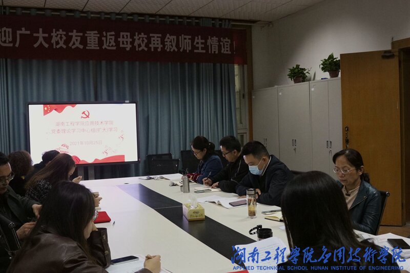 10月25日下午,应用技术学院党委理论学习中心组在院会议室101开展理论学习。此次中心组理论学习扩大到了全体教工党员。党委书记黎娅主持学习。
