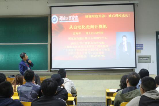 讲座中,雷海军向现场的学生讲述了自己的求学科研经历,分享了个人的成长和收获:要树立坚定的目标,并且需具备行动力、做实事的决心。雷海军强调树立目标和参与实践的同时,青年学子还需把握机会,充满信心和做好充足准备是基础。雷海军表示求学期间的自己对未来已有规划,在大学认真学习,找准方向,不断学习深造,才最终在学业上学术上有了一定成就。雷海军强调学生要尊师,号召同学们树立起尊师重道、立德树人的高尚品质。其次,雷海军强调加强德智体美劳综合素质的发展,通往成功的过程需要健康的体魄、学者的学识、外交官的风度、艺术家的气质。最后雷海军祝福母校:光辉历程更辉煌,人才辈出代代强,桃李满天扬四海,硕果累累振中华。