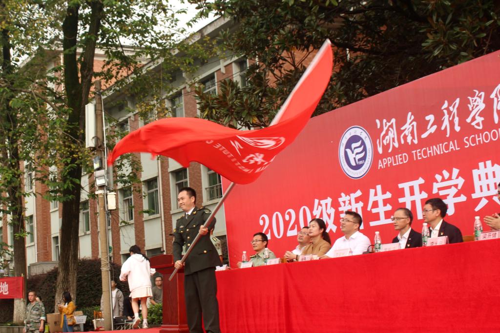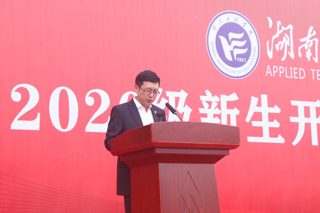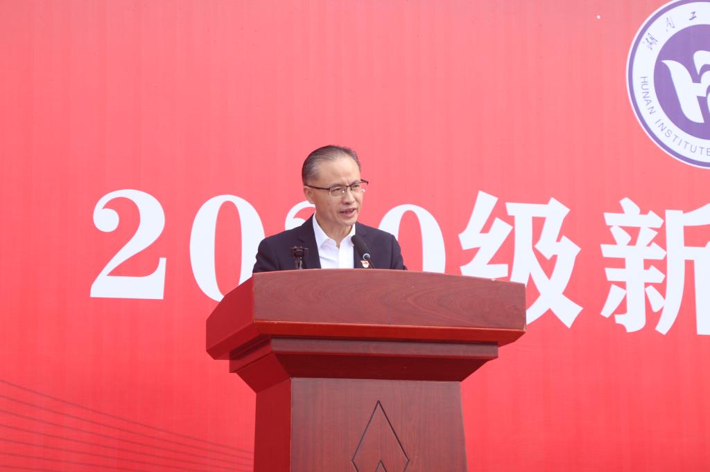 庄严的升旗仪式拉开开学典礼帷幕。罗毅平发表讲话。他代表学校欢迎新生们的到来,表示2020级新生经历非同寻常,由于新冠疫情面临诸多困难,但“困难并没有阻挡你们乘风破浪为梦想努力前行,你们每一位都是经受住了考验的勇士,我们为你们骄傲”。他向全体新生提出三点期望:一要牢记时代使命,勇担青春责任;二要坚守理想初心,勇于追求梦想;三要奋楫杨帆求索,勇做创新人才,“永葆理想初心,扛起时代大任,赓续‘锲而不舍,敢为人先’的湖工精神,不负时代,不负韶华,和学校一起创造更加光明灿烂的未来。”
