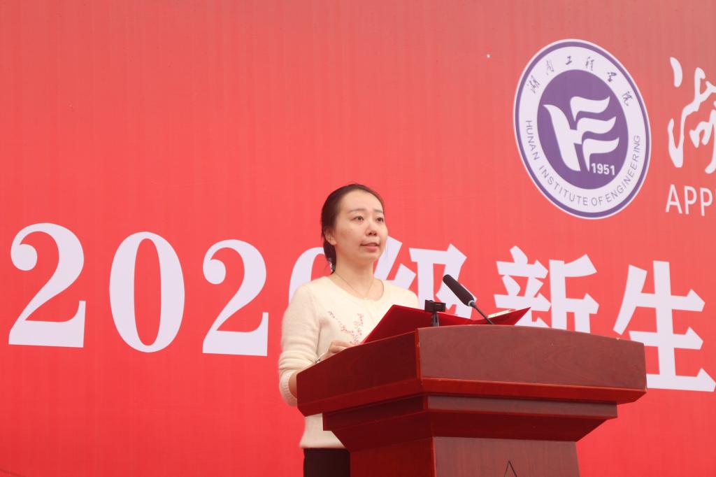 教师代表周舟妤栎发言,希望新生们在大学里立学、立行、立志,用青春的激情和智慧,点燃心中的理想,脚踏实地,刻苦努力,书写人生精彩的一页。