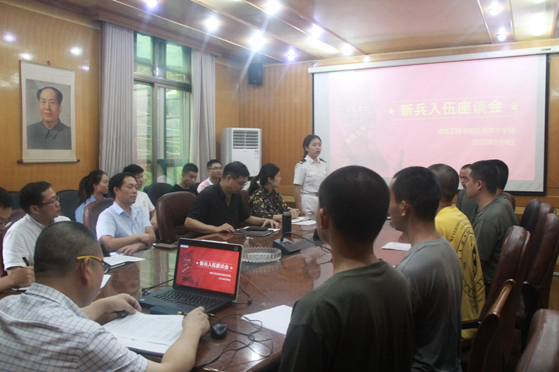 9月8日15点,我院2020年新兵入伍座谈会在207会议室召开。院长李光中,党委书记黎娅,副院长梁开健、胡武平,党委副书记陶连洲,学生工作办公室主任刘红石,院办公室负责人肖松涛、退伍学生和2020年入伍新兵参加会议。会议由黎娅主持。