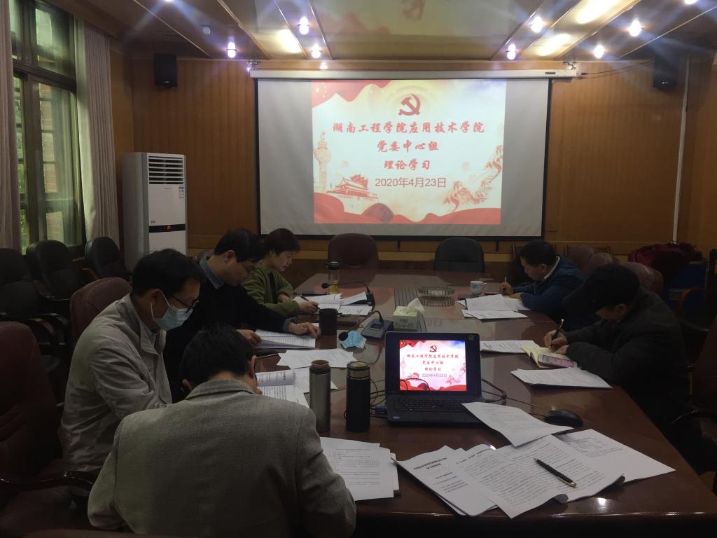4月23日下午,应用技术学院党委理论学习中心组七名成员在院会议室开展理论学习,党委书记黎娅主持。