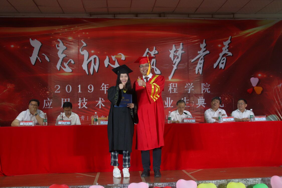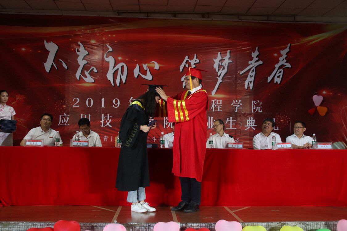 李爱国宣读应用技术学院省市校级优秀毕业生表彰文件,39人被授予省级优秀毕业生,41人被授予市级优秀毕业生,108人被授予校级优秀毕业生。现场领导为优秀毕业生颁发荣誉证书,为毕业生代表颁发毕业证书后,李光中为毕业生代表正冠,拨穗,授予学位证书。学位授予仪式上,2019届毕业生们开心又激动地等待着接受学位这一时刻,有的同学还与李光中深情拥抱,合影留念。典礼上,全体毕业生用一次次雷鸣般的掌声表达了他们对母校的眷恋和对未来的信心。