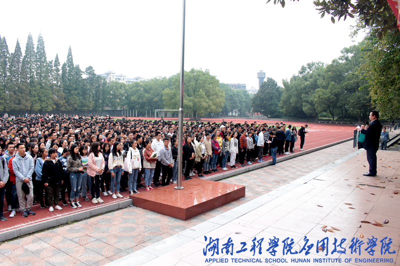 10月24日12:30,我院于田径场举行10月份全体学生工作讲评。我院党总支副书记徐粤宇、学生工作办公室主任刘红石、团总支书记唐冰、学生辅导员老师孙传旺、蒋惠筠、曹时艳及学院全体学生参加此次讲评,徐粤宇担任此次讲评主持。