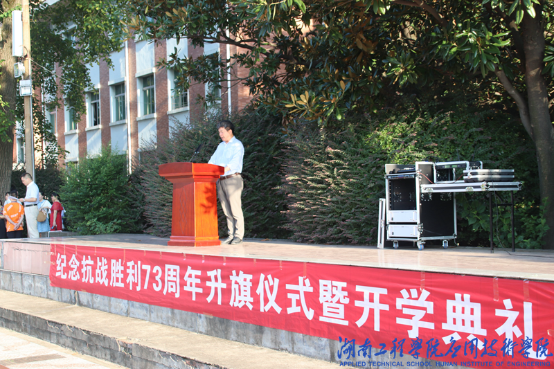 9月3日早上7:30,应用技术学院于南院田径场举行“纪念中国人民抗日战争胜利73周年”升旗仪式暨开学典礼。学院党总支书记李爱国、党总支副书记徐粤宇,学办全体辅导员、班主任老师及全院3000余学生参加仪式。