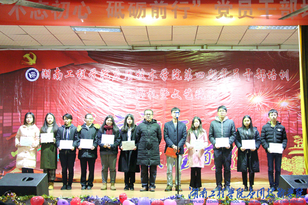 1月5日晚上6:30,我院在一教四楼隆重举行2018年党员干部结业典礼暨文艺晚会,出席本次活动的有党总支书记李爱国、党总支副书记徐粤宇、学生工作办公室主任刘红石、团总支书记唐冰、辅导员老师陈玄哲。本次结业典礼由徐粤宇主持。