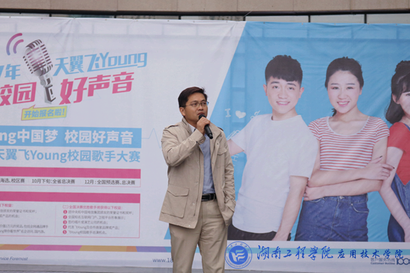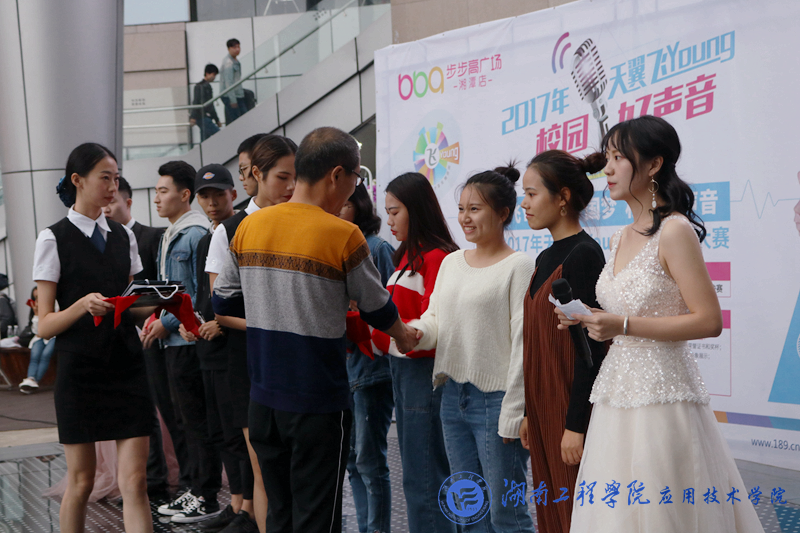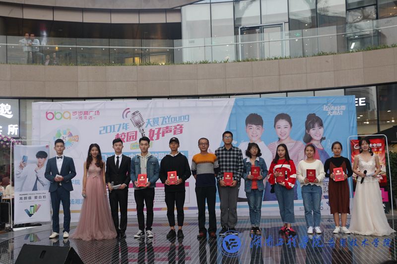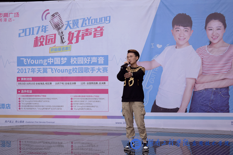 10月22日下午2:00,我院举办的2017“天翼飞Young校园好声音”决赛在湘潭华隆步步高四楼空中舞台拉开决战帷幕。十五位佼佼者经海选、初选、复选脱颖而出,会战决赛舞台。党总支副书记徐粤宇、团总支书记唐冰、学生工作办公室主任刘红石、教务处老师杨力舜、湖南省音协会员李存智、中国电信湘潭分公司代表王艳舞女士、赵鹏先生出席并担任决赛评委嘉宾。